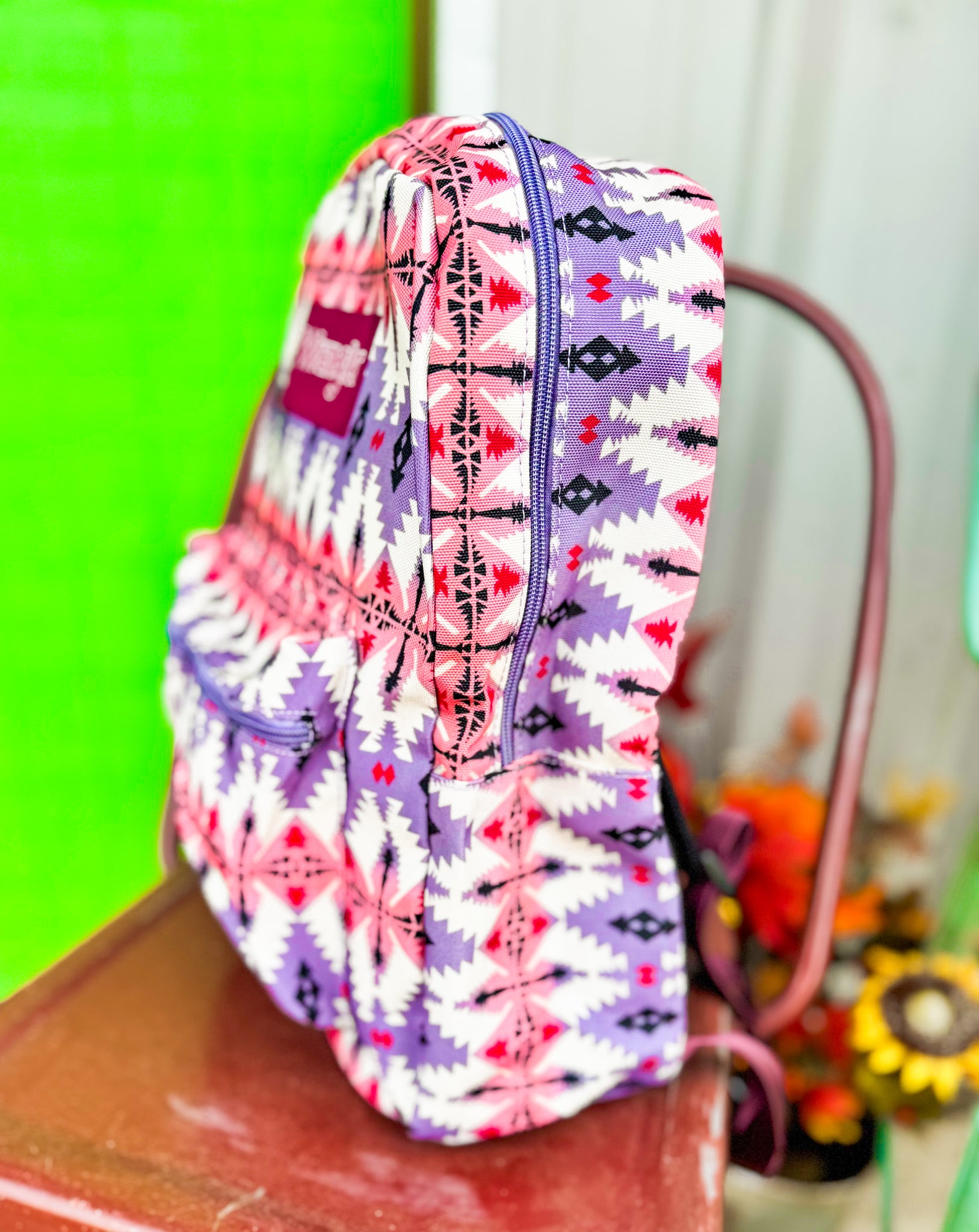 Let your wild side shine with the Painted Sky Backpack from Wrangler! 🎒🤠Bursting with pink and purple Aztec flair, this beauty is made for the bold, free-spirited babe who’s always chasing sunsets and good vibes. 🌅